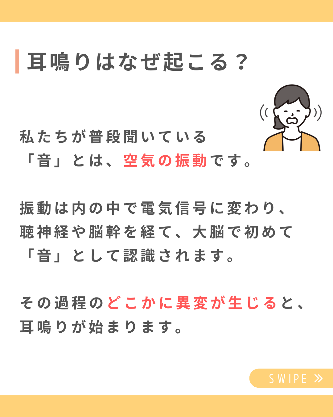その過程のどこかに異変が生じると、耳鳴りが始まります。