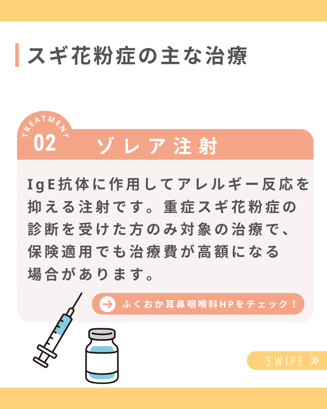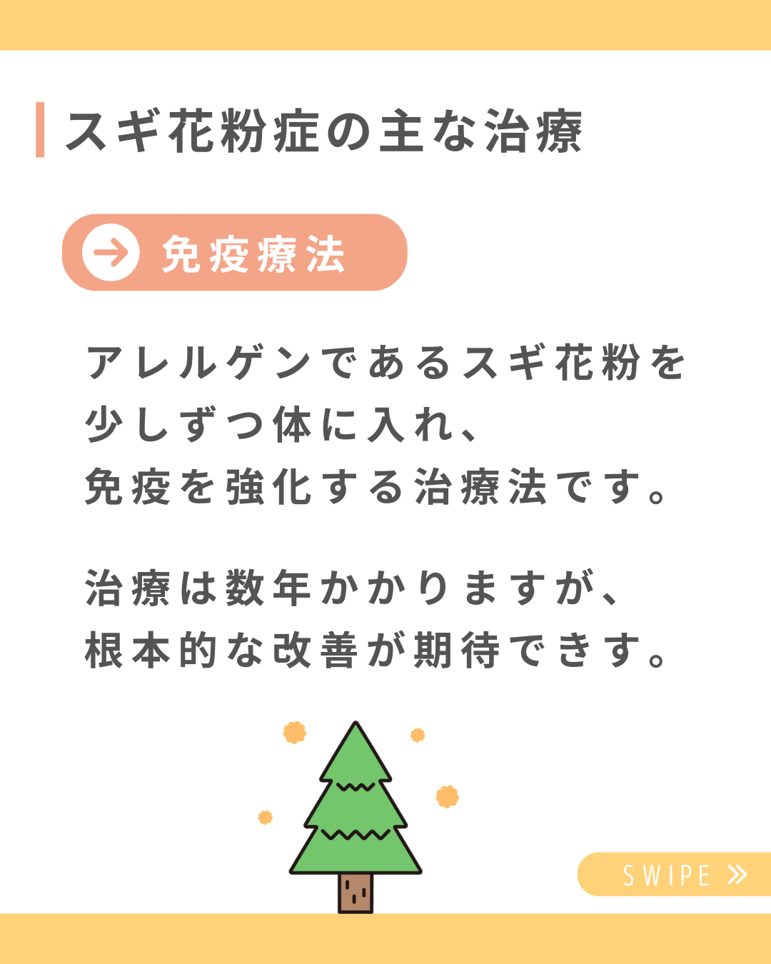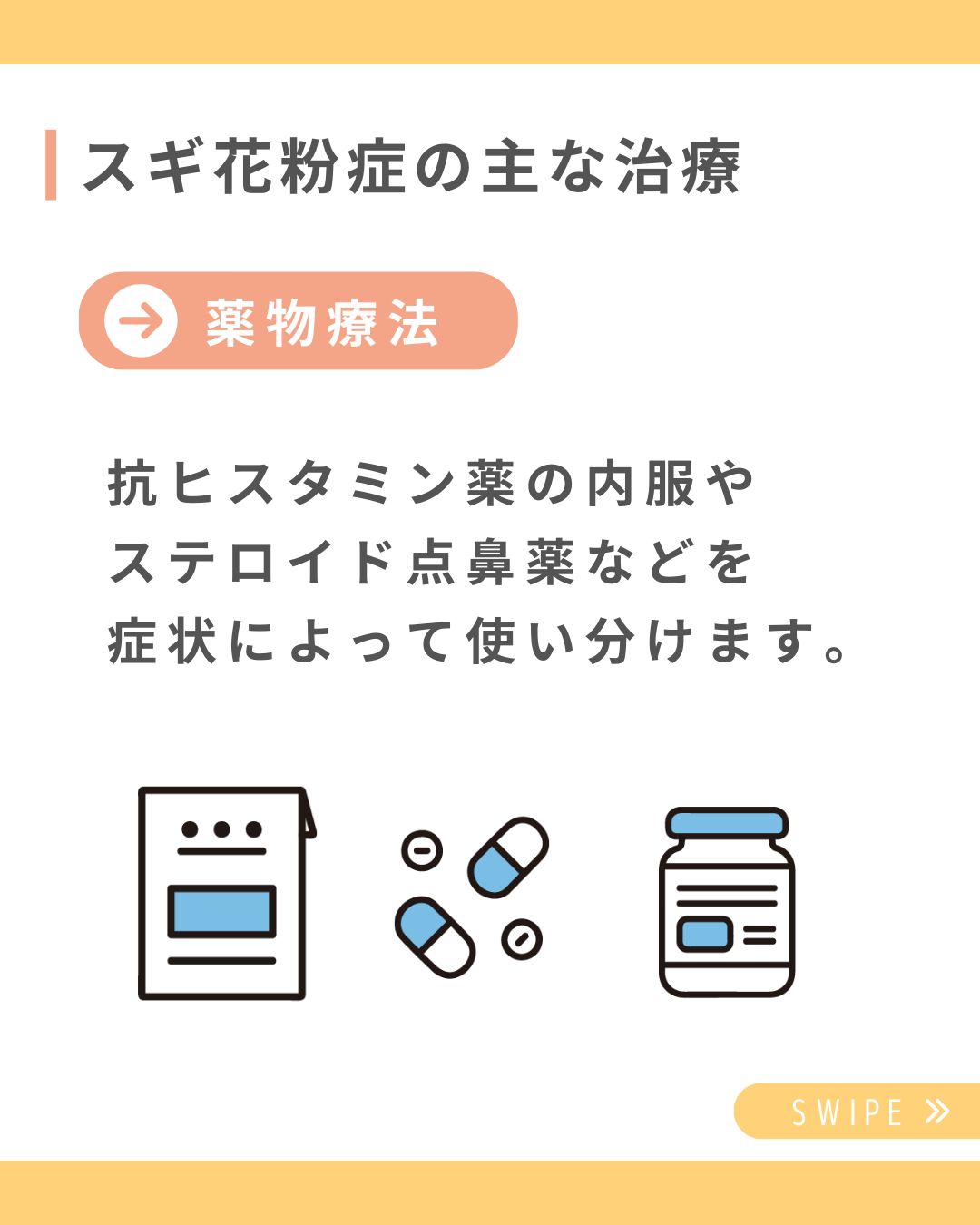 今回の投稿ではスギ花粉症の主な治療方法についてご紹介します🙆🏻‍♀️