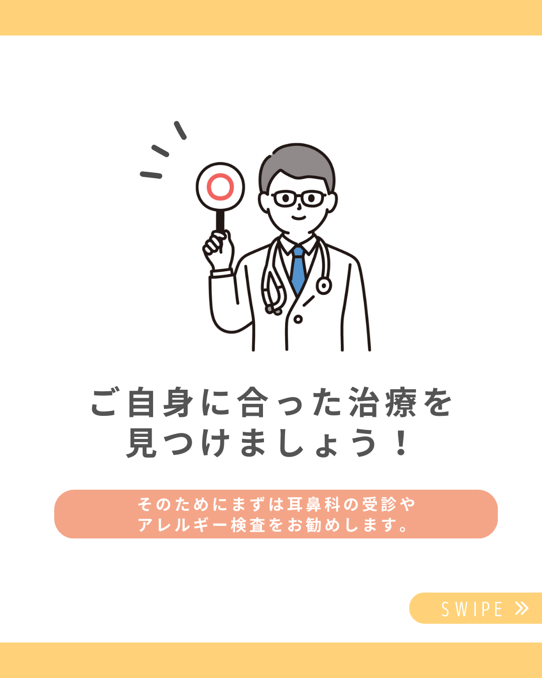 そのためにまずは耳鼻科の受診やアレルギー検査をお勧めします。