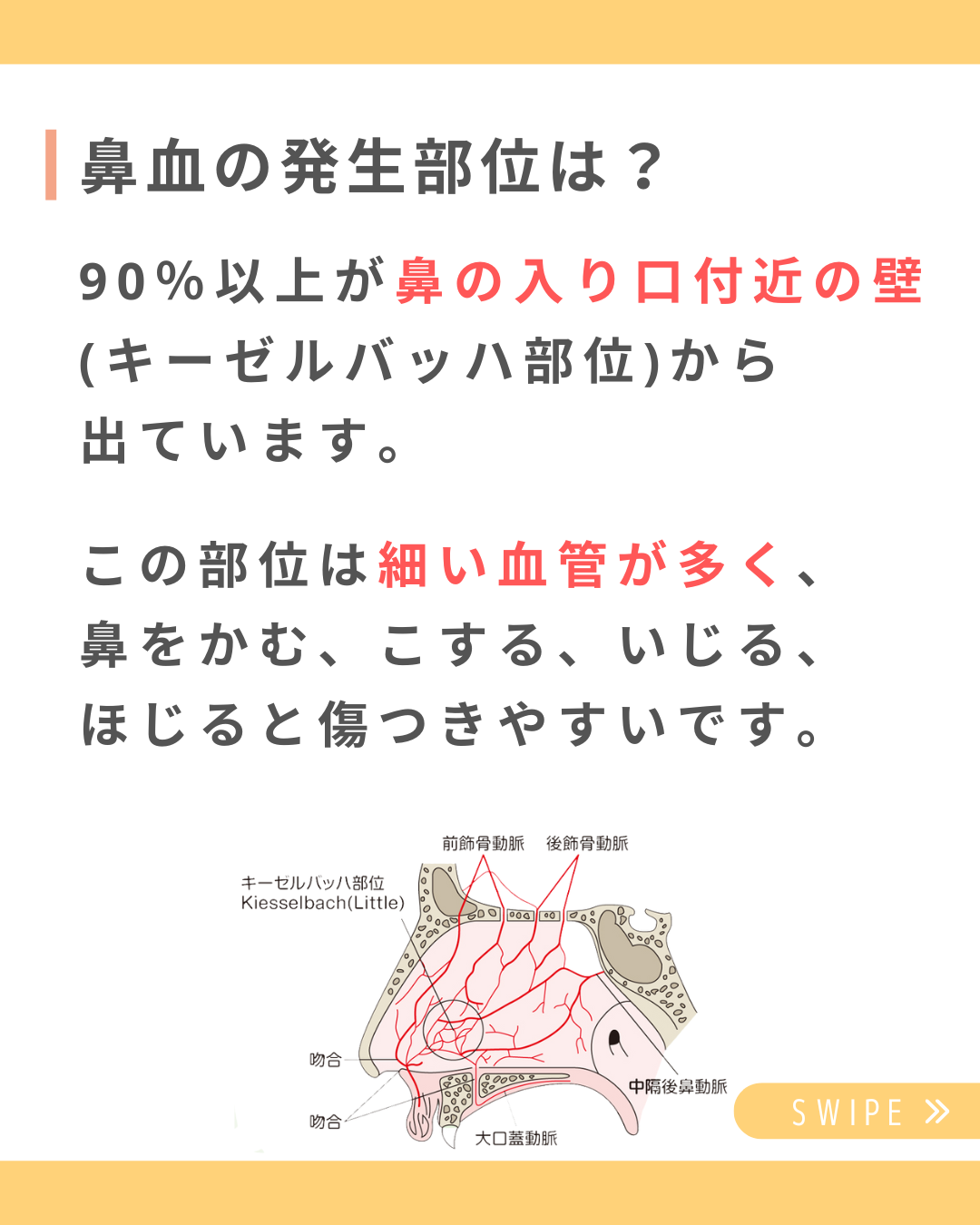 90%以上が鼻の入り口付近の壁(キーゼルバッハ部位)