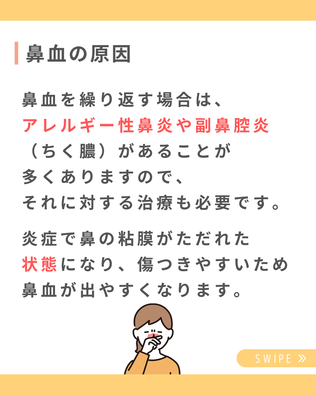 お子さんの場合は、鼻をかむ、こする、いじる、ほじる