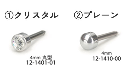 クリニックで用意したピアス(①クリスタル または ②プレーン)から選んでいただき、ピアッシングしていきます。 (複数カ所穴あけする場合はすべて同じピアスになります。) 金属アレルギーの少ない純チタンのピアスを使用しています。